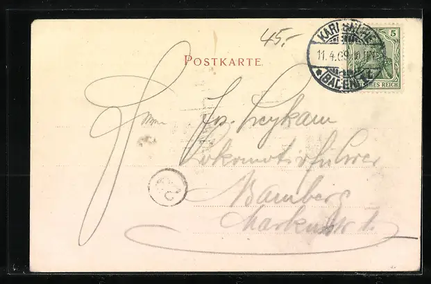 alte Ansichtskarte, gelaufen 1909, Eckknicke li., Stempelspur, guter Zustand