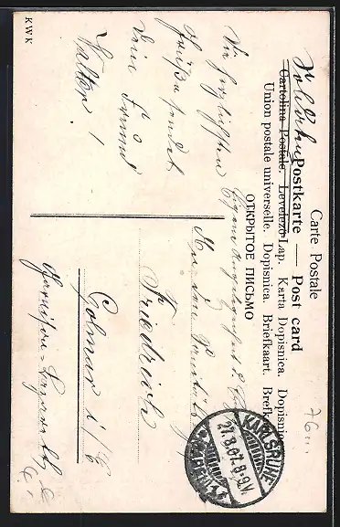 alte Ansichtskarte, gelaufen 1907, Stempelspur, guter Zustand