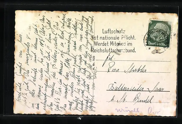 alte Ansichtskarte, gelaufen 1937, rückseitig Klebe- und Papierreste, rückseitig Oberflächenschaden, guter Zustand