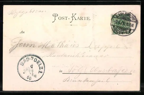 alte Ansichtskarte, gelaufen 1900, Eckknick li. oben, guter Zustand