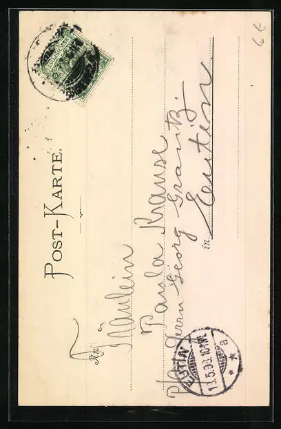 alte Ansichtskarte, gelaufen 1898, Stempelspur, guter Zustand