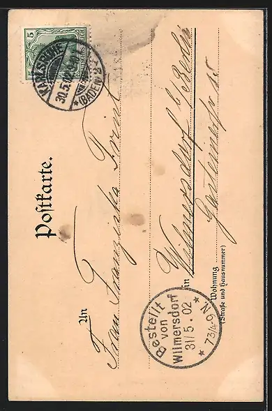alte Ansichtskarte, gelaufen 1902, Eckknick re. oben, guter Zustand