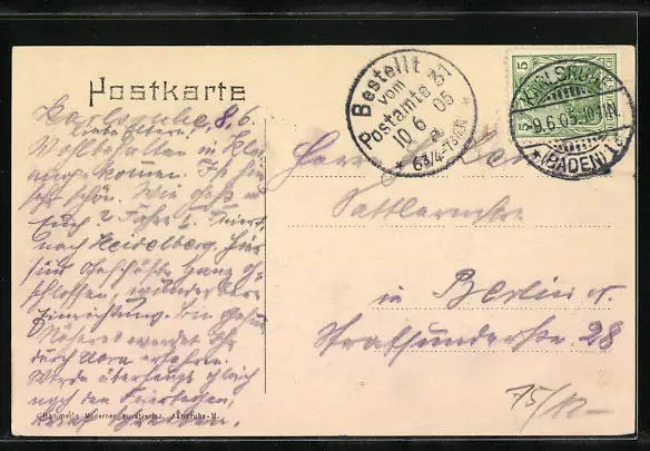alte Ansichtskarte, gelaufen 1905, Bugspur li. unten, guter Zustand