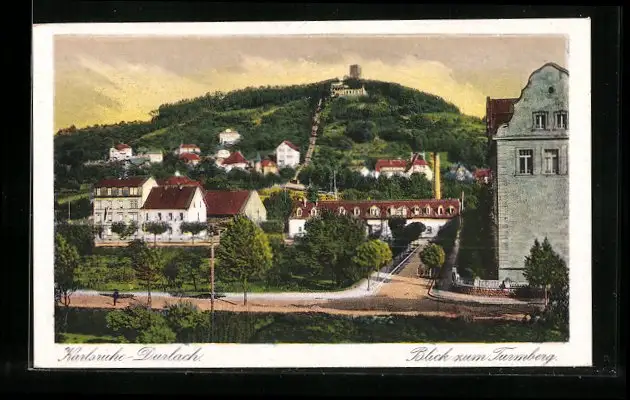 AK Karlsruhe-Durlach, Blick zum Turmberg