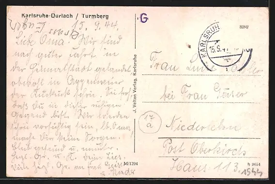 gelaufen 1944, Briefmarke entfernt, guter Zustand