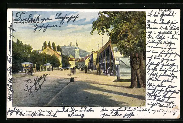 AK Karlsruhe-Durlach, Strassenpartie im Ort