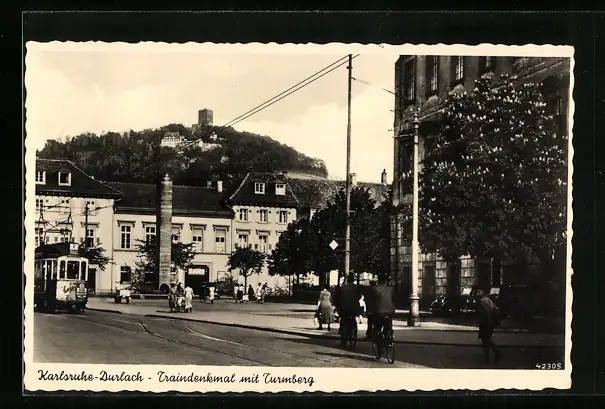 AK Karlsruhe-Durlach, Traindenkmal mit Turmberg