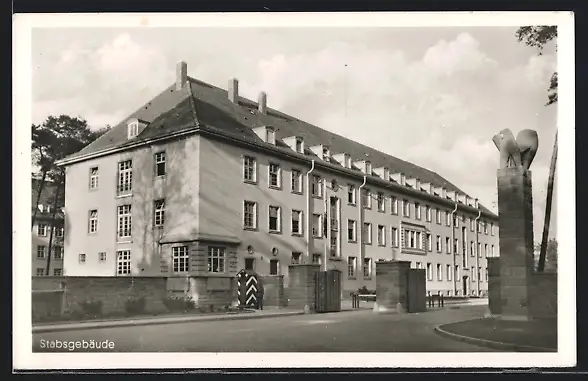 AK Karlsruhe, Eingang der Mackensen-Kaserne mit Stabsgebäude