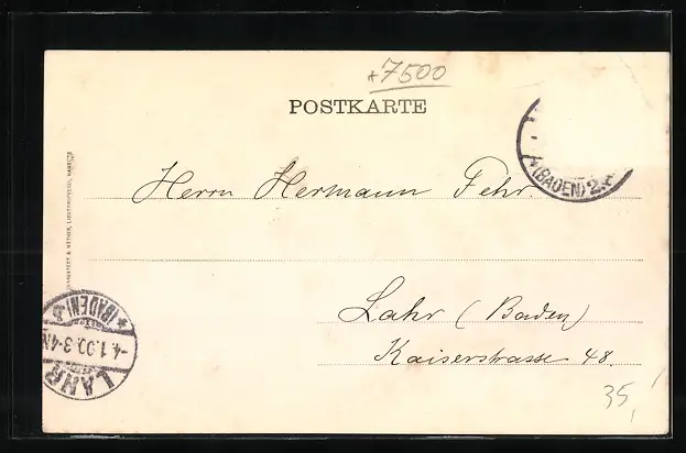 alte Ansichtskarte, gelaufen 1900, Briefmarke entfernt, rückseitig Oberflächenschaden, guter Zustand
