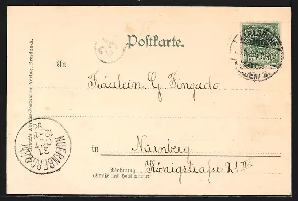 alte Ansichtskarte, gelaufen 1896, guter Zustand