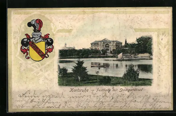 AK Karlsruhe, Festhalle mit Stadtgartensee