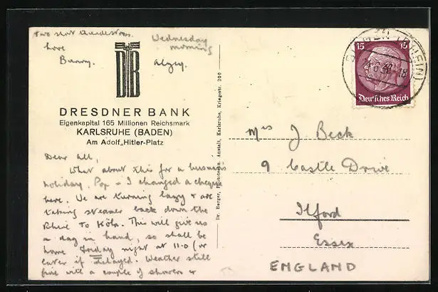 alte Ansichtskarte, gelaufen 1936, guter Zustand