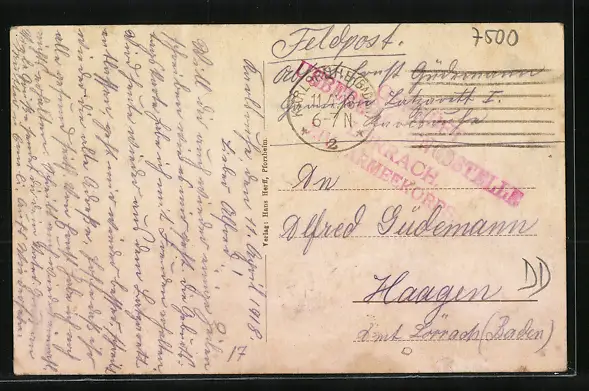 alte Ansichtskarte, gelaufen 1918, Eckknicke re., guter Zustand