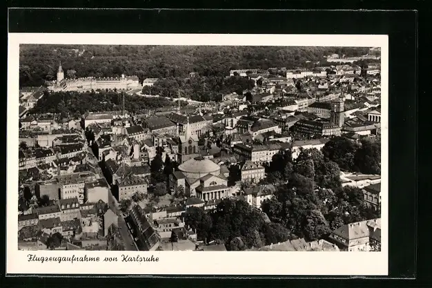 AK Karlsruhe, Gesamtansicht, Flugzeugaufnahme