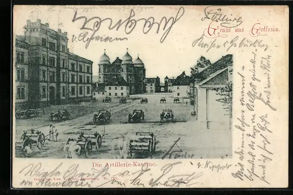 AK Karlsruhe, Gottesau, Artilleriekaserne mit Strasse