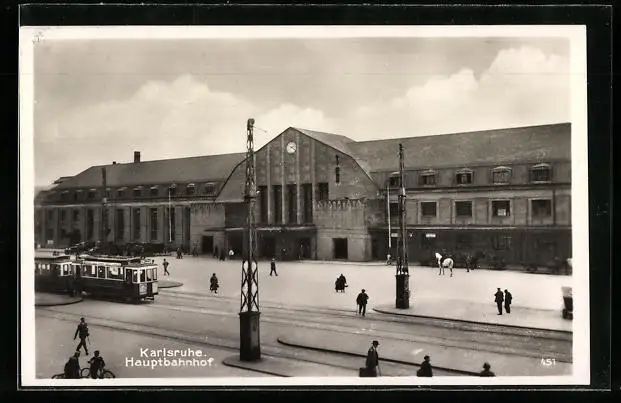 AK Karlsruhe, Hauptbahnhof mit Strassenbahn