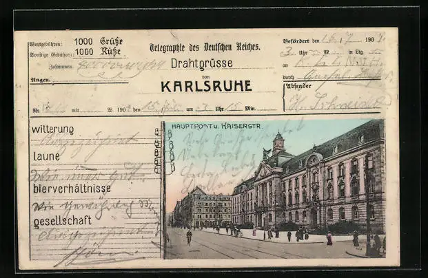 AK Karlsruhe, Hauptpost und Kasierstrasse