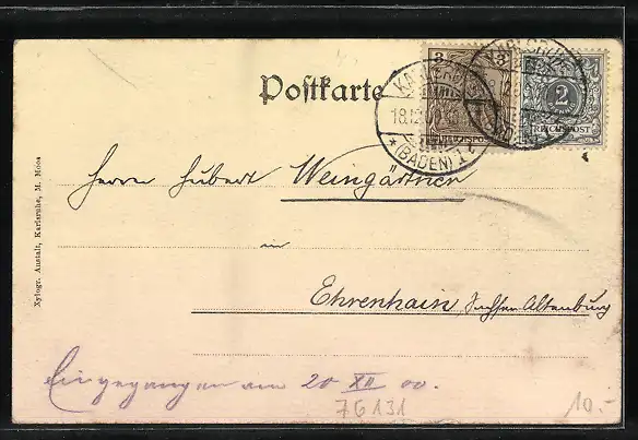 alte Ansichtskarte, gelaufen 1900, guter Zustand