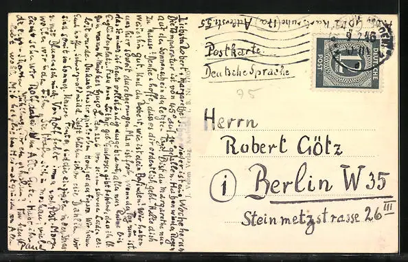 gelaufen 1946, rückseitig Klebe- und Papierreste, guter Zustand