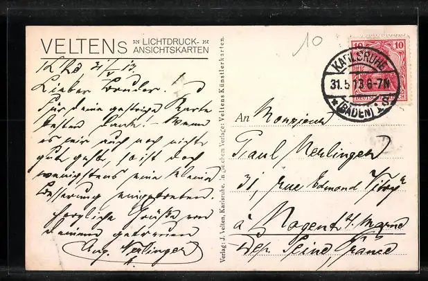 alte Ansichtskarte, gelaufen 1913, Stempelspur, guter Zustand