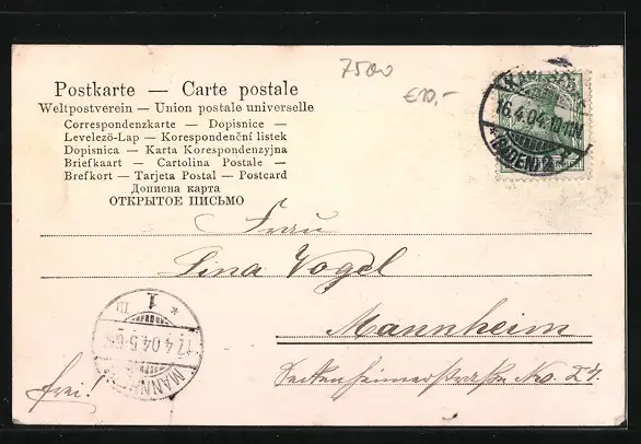 alte Ansichtskarte, gelaufen 1904, guter Zustand