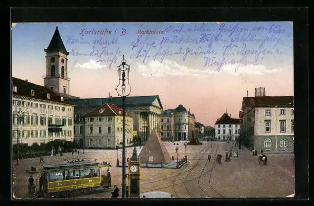 AK Karlsruhe, Hotel Grosse & Strassenbahn am Marktplatz