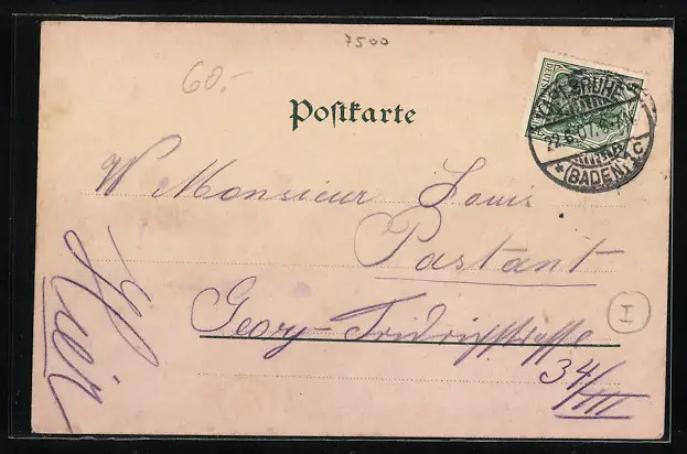 gelaufen 1907, Eckknicke li. oben und re. unten, guter Zustand