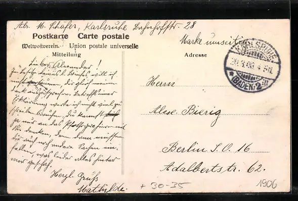 alte Ansichtskarte, gelaufen 1906, guter Zustand