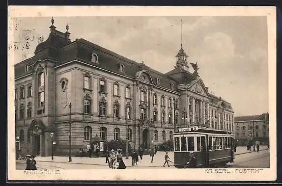 AK Karlsruhe, Kaiserl. Postamt, Strassenbahn