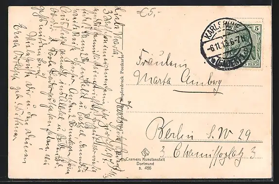 alte Ansichtskarte, gelaufen 1913, Stempelspur, guter Zustand