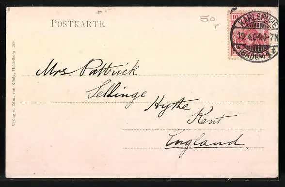 gelaufen 1904, Eckknick oben links, guter Zustand