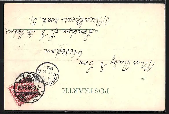 alte Ansichtskarte, gelaufen 1899, guter Zustand