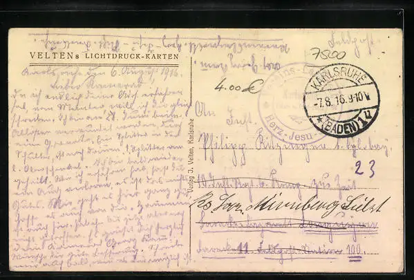 alte Ansichtskarte, gelaufen 1916 als Feldpost, guter Zustand