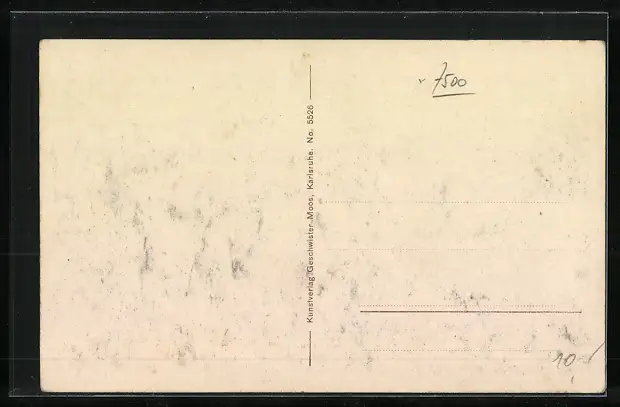Personenbezogene Daten auf der Rückseite der Karte wurden durch blauen Textmarker unkenntlich gemacht. Die blauen Stellen sind auf die Vorderseite durchgeweicht und wirken sich negativ auf das Postkartenfoto aus