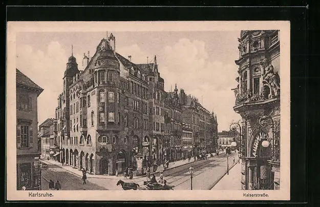 AK Karlsruhe, Kaiserstrasse mit Geschäften