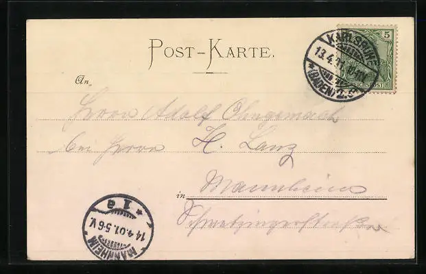 alte Ansichtskarte, gelaufen 1901, Eckknick re. unten, guter Zustand
