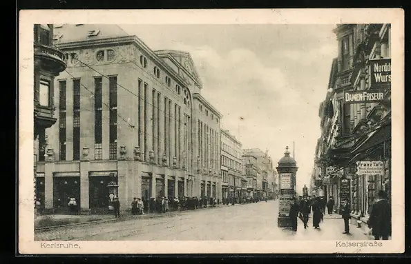 AK Karlsruhe, Kaiserstrasse mit Geschäften