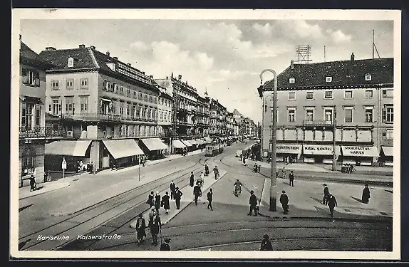AK Karlsruhe, Kaiserstrasse mit Strassenbahn