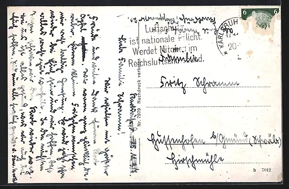 alte Ansichtskarte, gelaufen, Briefmarke entfernt, guter Zustand