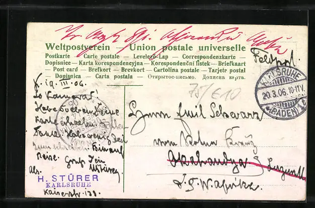alte Ansichtskarte, gelaufen als Feldpost 1906, Stempelspur, guter Zustand