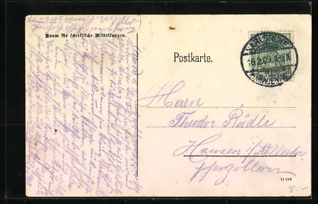 alte Ansichtskarte, gelaufen 1909, Oberflächenschaden li. oben, Eckschaden li. oben, guter Zustand