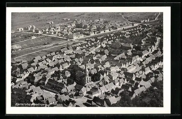 AK Karlsruhe-Knielingen, Ortsansicht vom Flugzeug aus