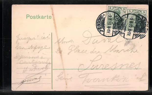 alte Ansichtskarte, gelaufen 1910, Eckknicke unten, Stempelspur, guter Zustand