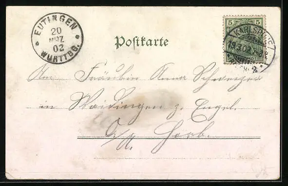 alte Ansichtskarte, gelaufen 1902, Eckknick re. unten, guter Zustand
