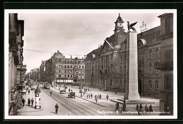 AK Karlsruhe, Lorettoplatz mit Grenadierdenkmal