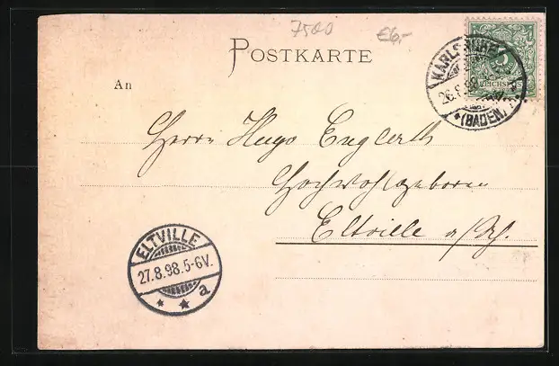 alte Ansichtskarte, gelaufen 1898, Knick an der rechten Kante, guter Zustand