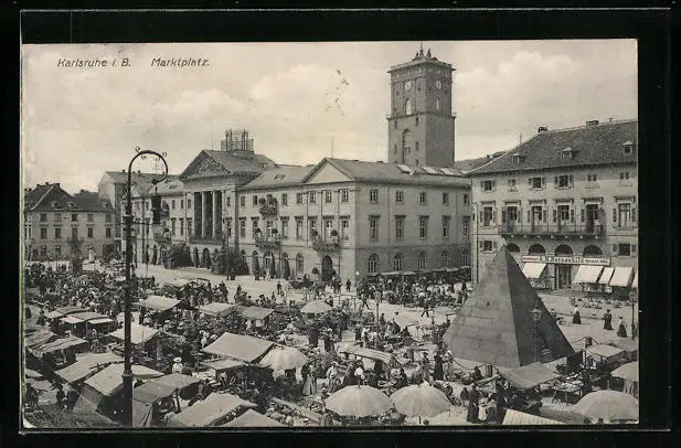 AK Karlsruhe, Marktplatz aus der Vogelschau