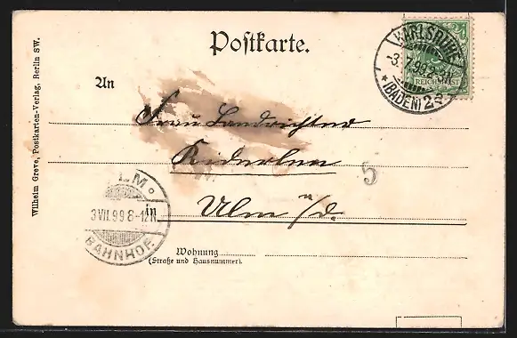 alte Ansichtskarte, gelaufen 1899, guter Zustand
