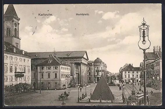 AK Karlsruhe, Marktplatz mit Pyramide