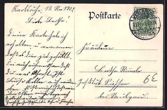 alte Ansichtskarte, gelaufen 1909, Ecken bestoßen, Stempelspur, guter Zustand